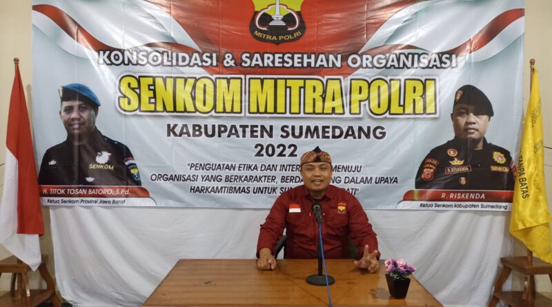 Ketua Senkom Kab. Sumedang R.Riskenda menyampaikan bahwa Konsolidasi dan saresehan sekarang sangat berbeda karena diadakan di aula Baitul Makmur Cilengkrang Kab.Sumedang, dan Yang sangat luar bisa Rieskenda menuturkan bahwa acara ini dihadiri langsung oleh Ketua Senkom Jawa Barat. H. TItok Tosan Batoro bersama jajaran penghar Jabar termasuk Wakil ketua serta humas turut mendampingi. Selanjutnya Riskenda mengatakan konsolidasi senkom sumedang ini bertujuan untuk meningkatkan peran aktif senkom baik di internal Organisasai maupun dimasrarakat, disamping menjaga tali silaturrahim masing masing anggota, juga beupaya menambah semangat/motivasi anggota agar lebih aktir,kompak seperti semboyan senkom siaga saat aman ada saat dibutuhkan.